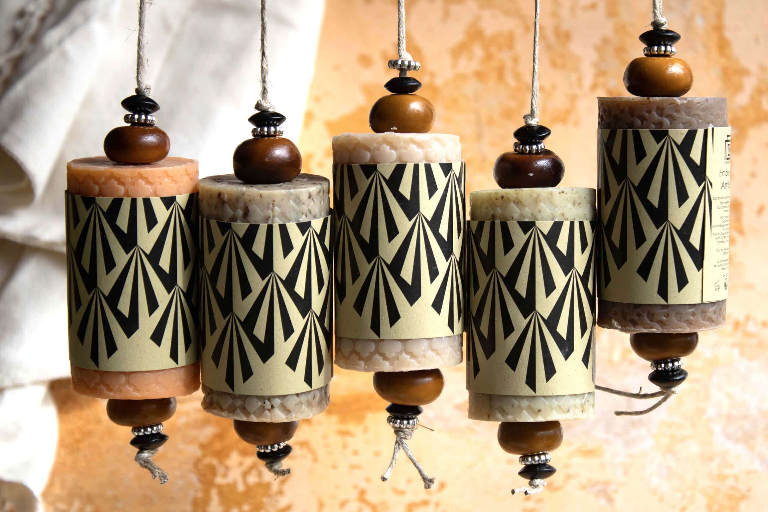 Nos savons présentés sur corde agrémentés de perles décorent et parfument votre salle de bain. Ils durent également plus longtemps car ils sèchent mieux entre deux usages. Vous pourrez l’accrocher facilement dans votre salle de bain, aux poignées de douche ou robinet.